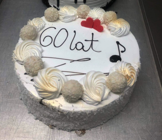 Cena jest podana za 1,5 kg +/- 10%. Z tej wielkości tortu można wykroić około 13-15 porcji. Sposób przyozdobienia może się różnić. Treść napisu proszę wpisać w komentarzu do zamówienia.