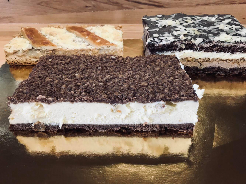 Zestaw składa się z kołacza z jabłkiem, sernika łaciatego, jagodowca.